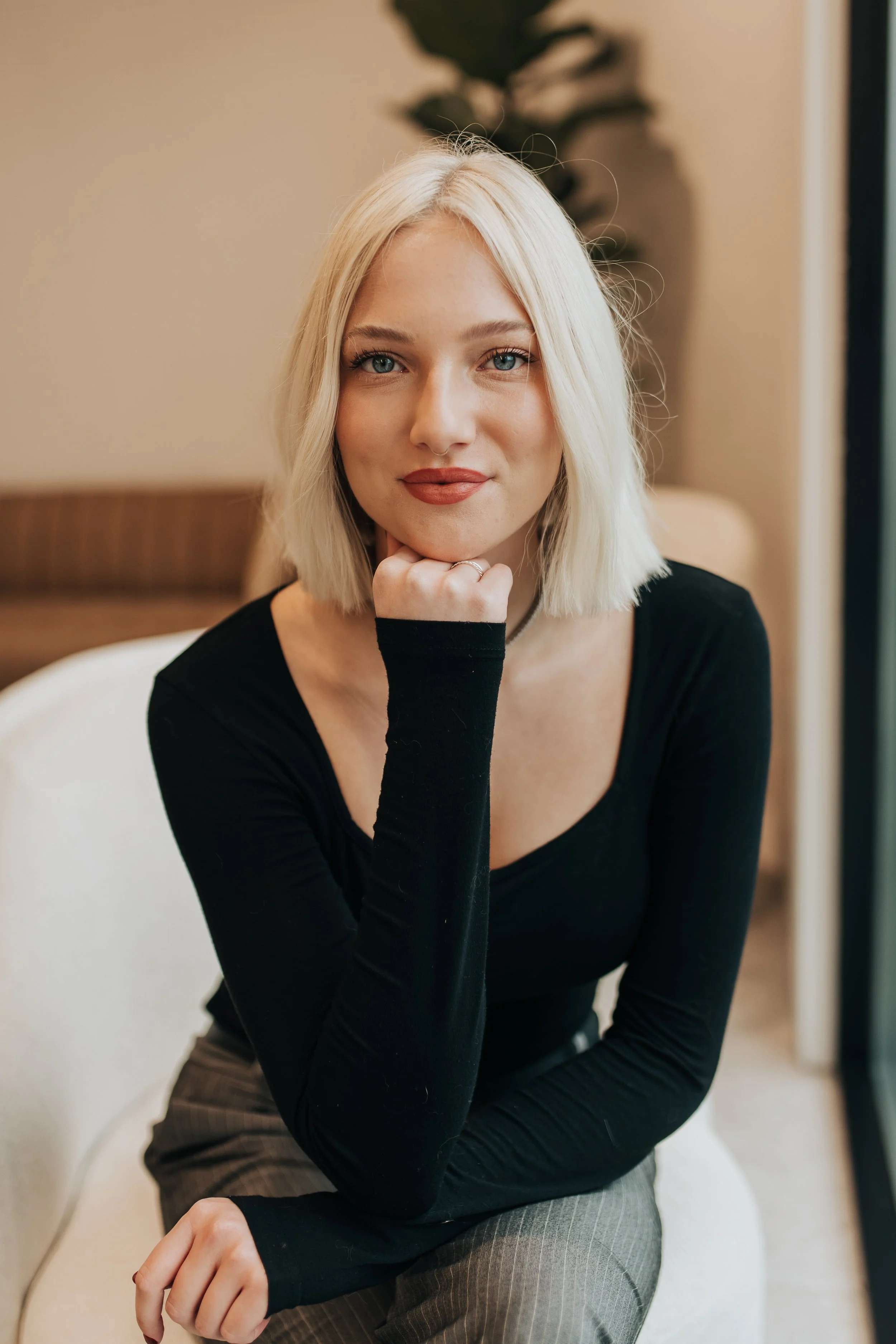 Introducing Gabriella! Passionate about blondes, she's the go-to hairstylist for creating stunning, sun-kissed looks that light up her client’s lives. With a flair for crafting the perfect shade of blonde tailored to each client's unique style and personality, Gabriella is dedicated to instilling confidence and fabulousness! When not behind the chair, she enjoys hanging out with friends and soaking up inspiration for her next creative masterpiece. As a travel enthusiast, Gabriella explores new destinations near and far, always seeking fresh perspectives and trends to bring back to her clients. Join her on this hair adventure, and let's turn blonde dreams into reality! Book an appointment today and create magic together.